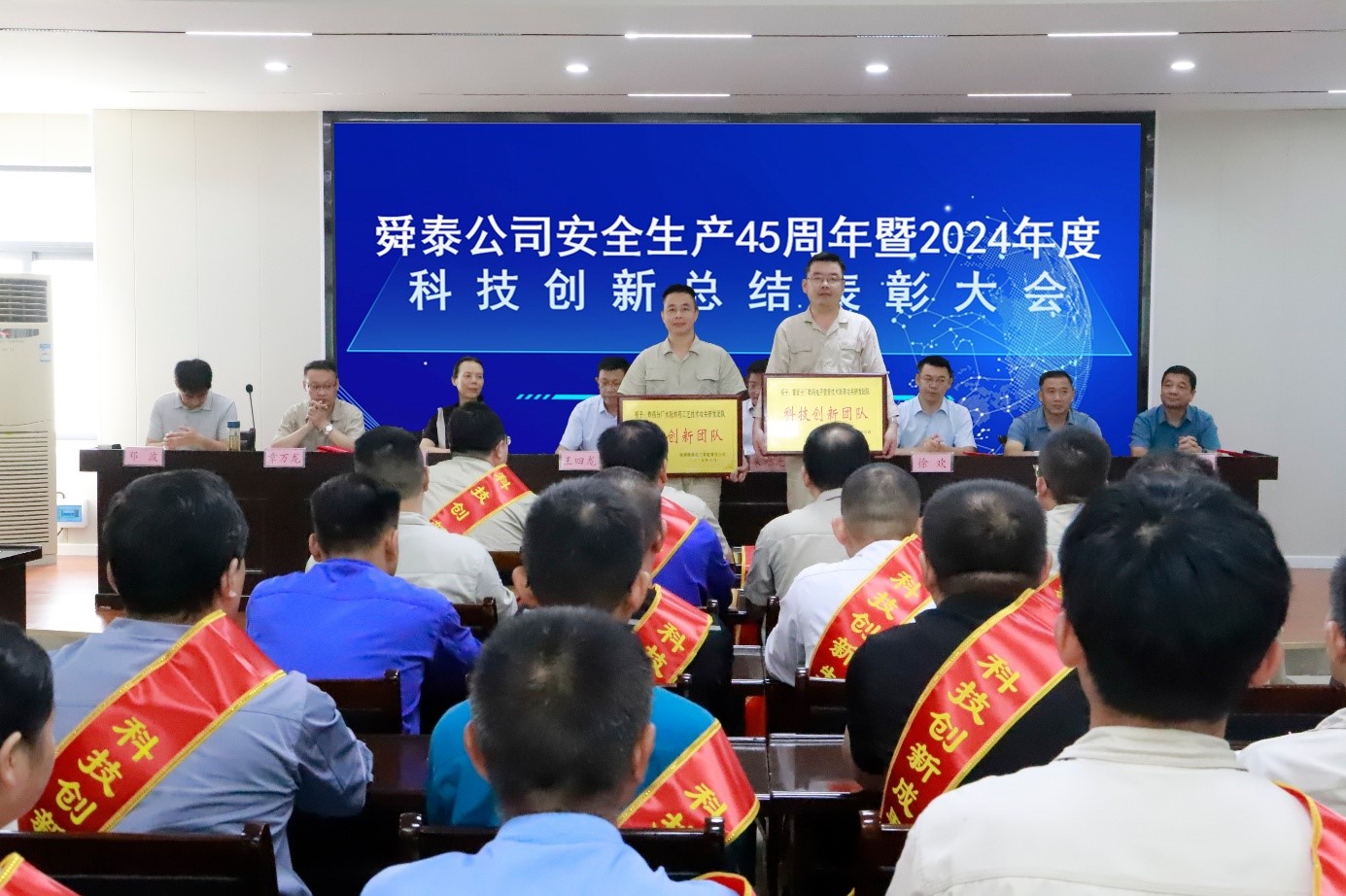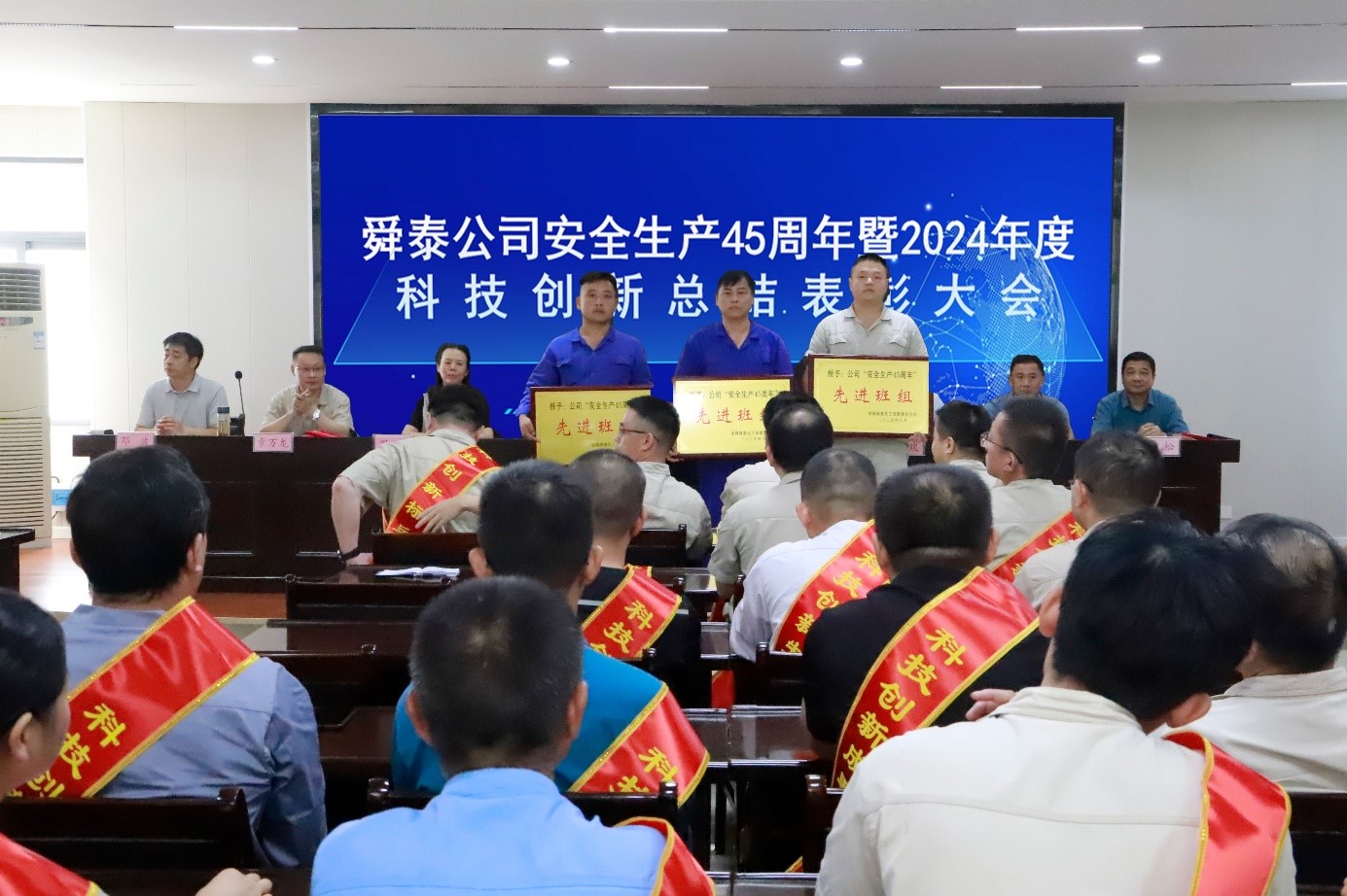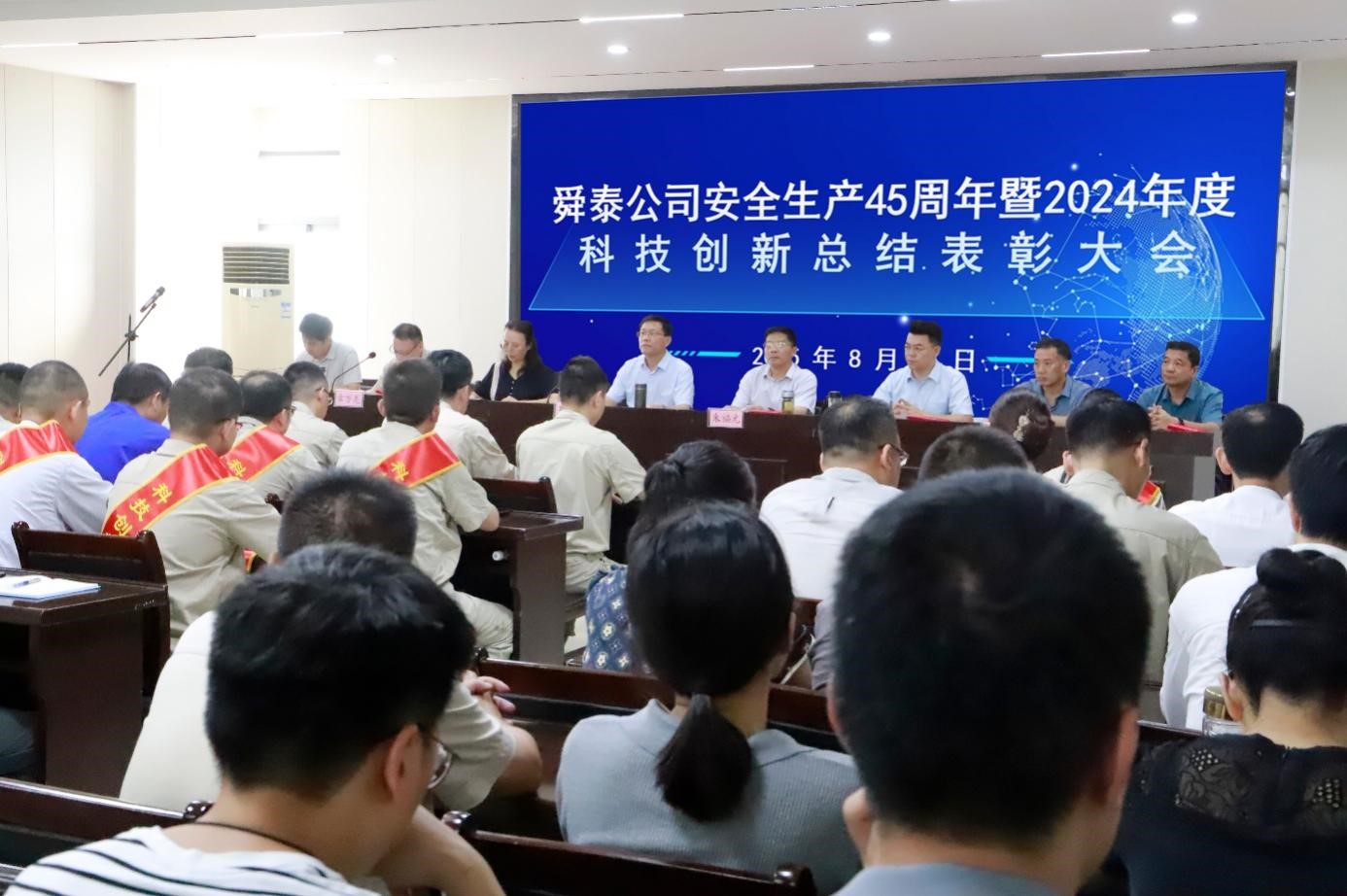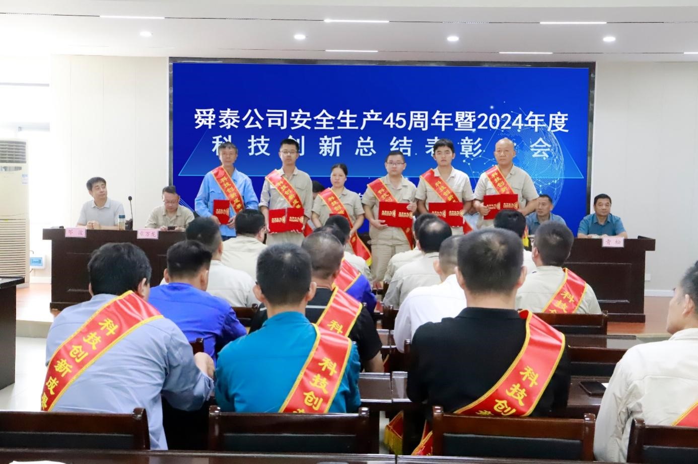 8月28日上午,舜泰公司在一号会议室隆重召开安全生产45周年暨2024年度科技创新总结表彰大会。公司党委书记、董事长王四龙主持会议。