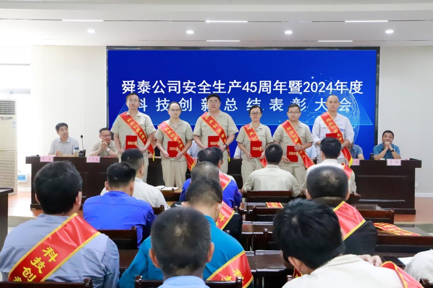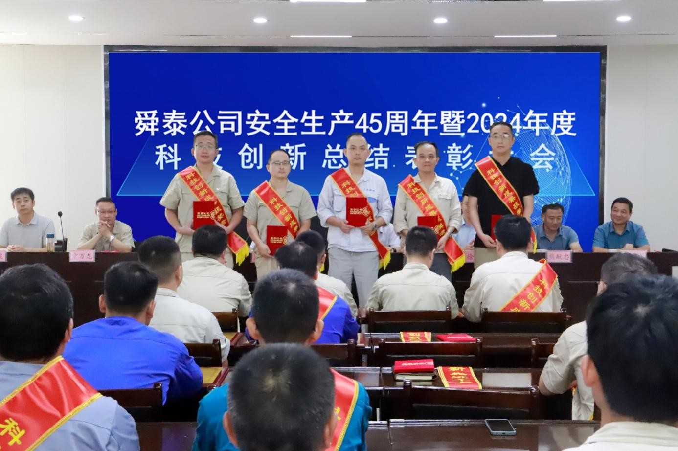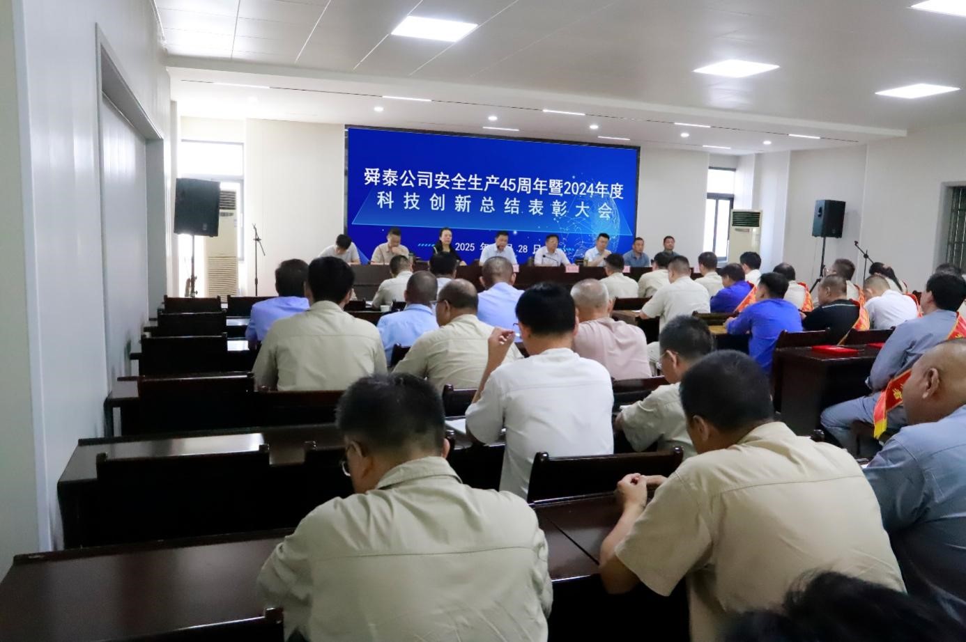 会上,公司党委副书记、总经理朱福元宣读《关于表彰安全生产45周年先进单位、先进班组、先进个人的通报》和《关于表彰舜泰公司2024年度“五小”竞赛活动获奖项目的决定》。公司副总经理、总工程师章万龙作《公司安全生产45周年和2024年度科技创新工作报告》。