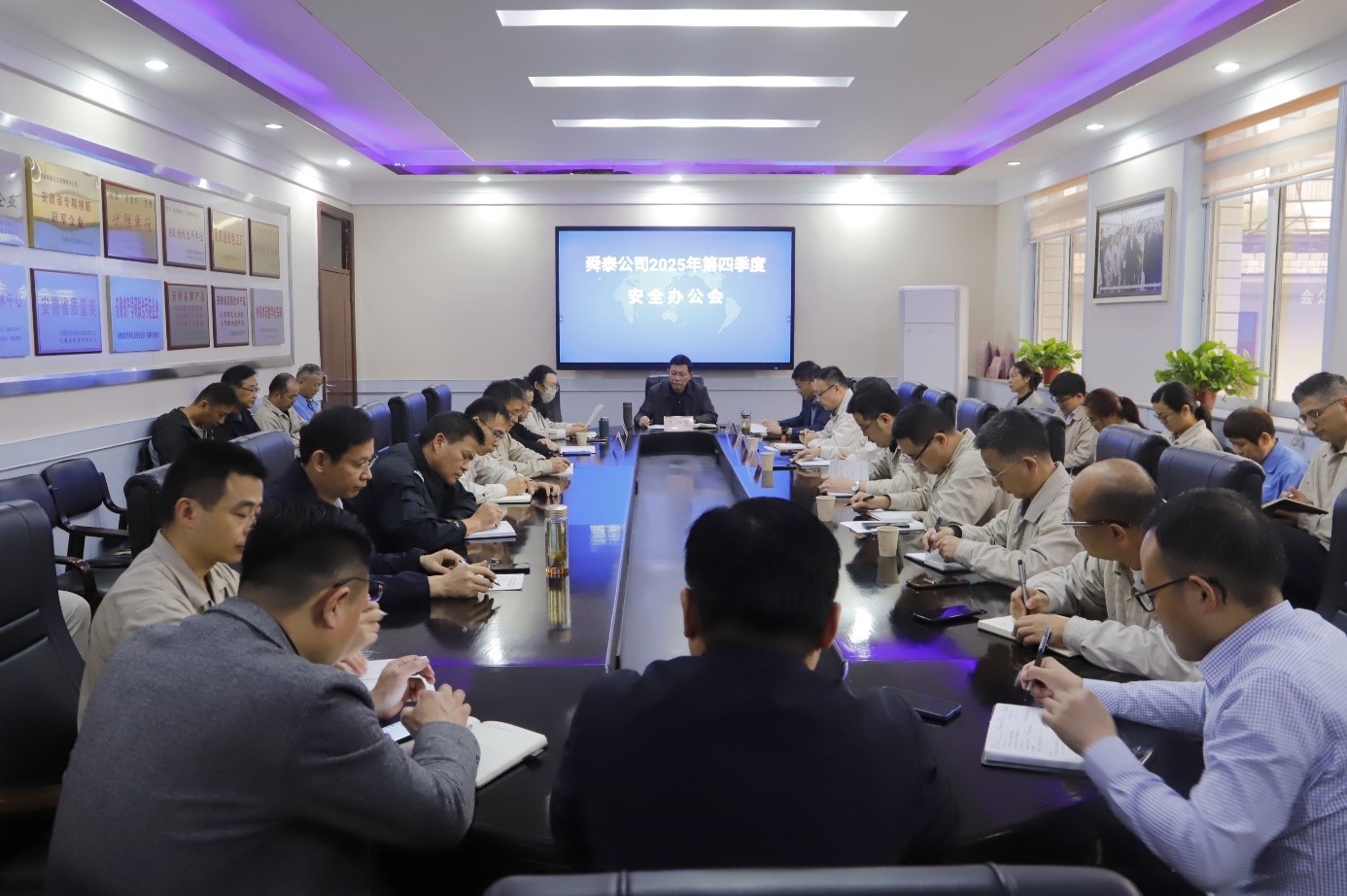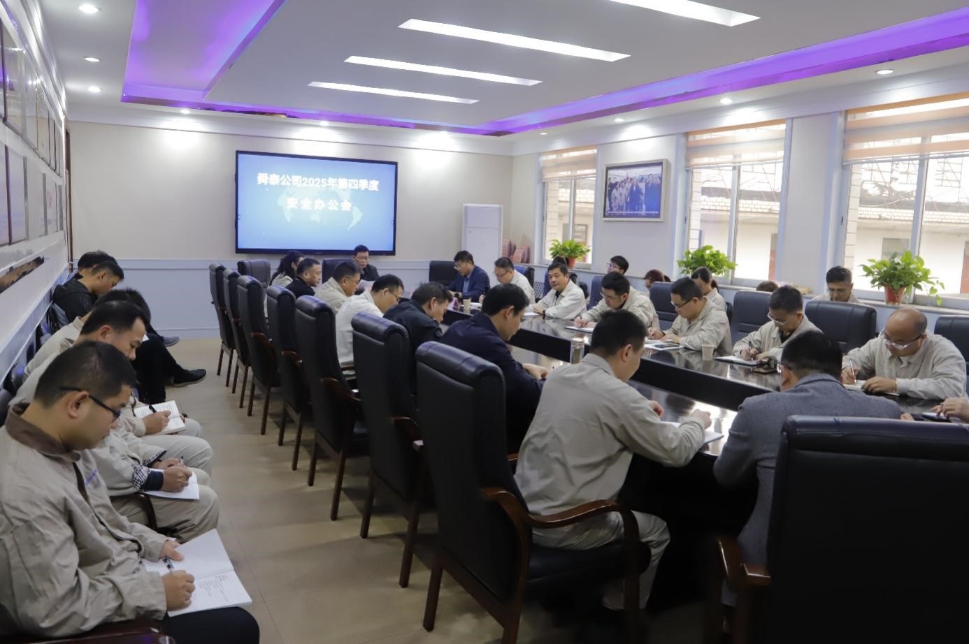 10月16日上午,舜泰公司在二号会议室召开2025年第四季度安全办公会。公司党委书记、董事长王四龙参加会议并强调,要认真学习贯彻习近平总书记关于安全生产的重要论述和重要指示批示精神,始终保持谦虚谨慎的态度和一抓到底的韧劲,坚持反复抓、抓反复,稳住公司当前良好的安全形势。公司党委副书记、总经理朱福元主持会议。