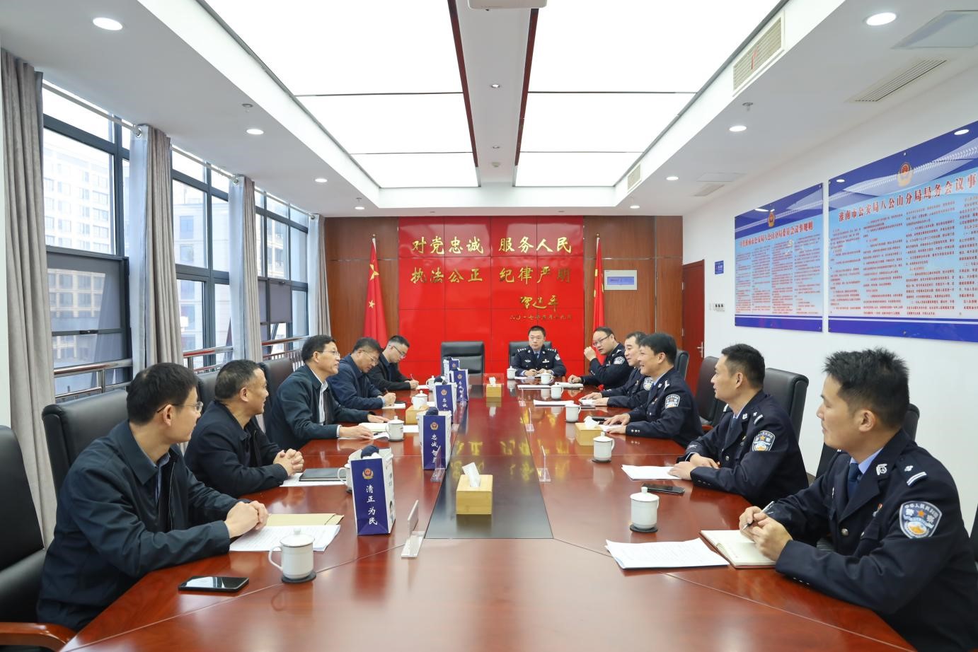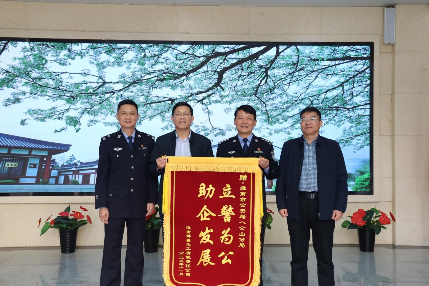 在分局会议室,王四龙简要介绍了公司的经营发展情况,对八公山分局广大干警积极发挥职能作用,真心服务于企业安全健康发展,积极为企业纾困解难、保驾护航表示感谢。同时,对分局积极维护地方安全稳定大局、保障人民群众安居乐业表示诚挚的敬意。
