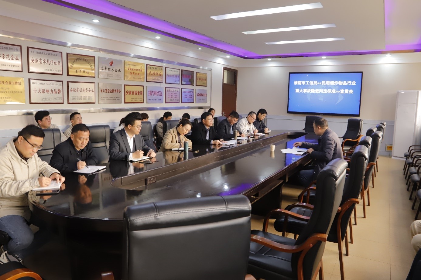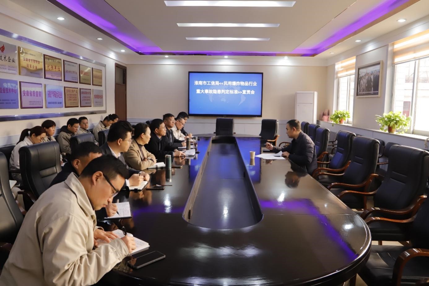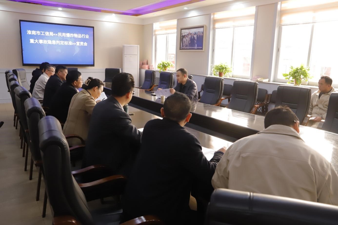 12月4日上午,市工信局安全生产科徐强前来公司就《民用爆炸物品行业重大事故隐患判定标准》进行专题宣贯与指导。公司党委书记、董事长王四龙,党委副书记、总经理朱福元,公司高管人员,各基层单位、部门负责人及安全管理人员参加会议。